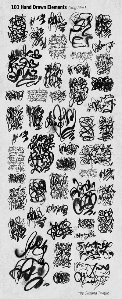 潮流Y2K千禧年复古街头涂鸦艺术墨水画笔元素合集包 Y2K Graffiti Scribble Grunge Ink