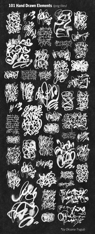 图穷联素材库 » 潮流Y2K千禧年复古街头涂鸦艺术墨水画笔元素合集包 Y2K Graffiti Scribble Grunge Ink