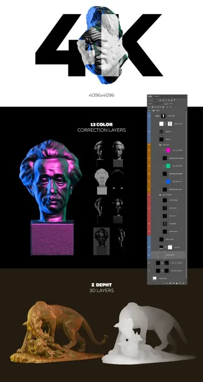 使用这些模拟雕塑来创建您自己的企业形象、应用程序、网页设计、印刷产品、纺织品。所有对象都与背景分离,这允许您将它们放置在任何背景上并由独特的图层组成,编辑允许您创建自己独特的图像。