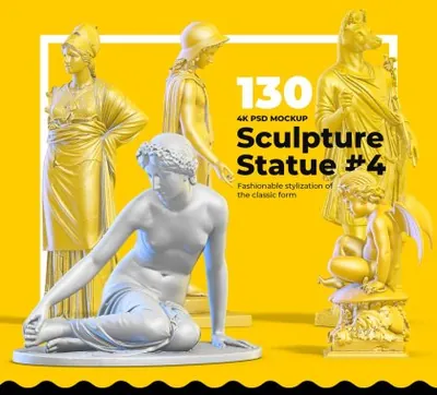 图穷联素材库 » 高质量三维渲染文艺复兴天使男人女人雕塑模特素材合辑 130 Sculpture Mockup