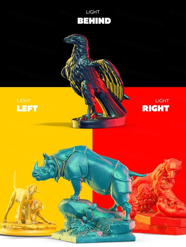 雕塑从多个角度呈现;