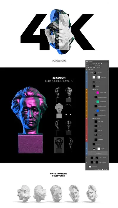 使用这些模拟雕塑来创建您自己的企业形象、应用程序、网页设计、印刷产品、纺织品。所有对象都与背景分离,这允许您将它们放置在任何背景上并由独特的图层组成,编辑允许您创建自己独特的图像。