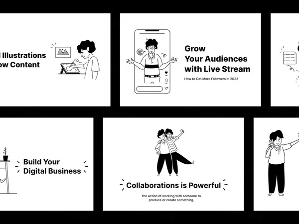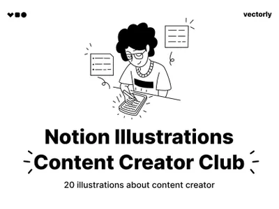 潮流黑白新媒体内容创作者人物场景主题插图插画素材合辑 Notion Content Creator Club