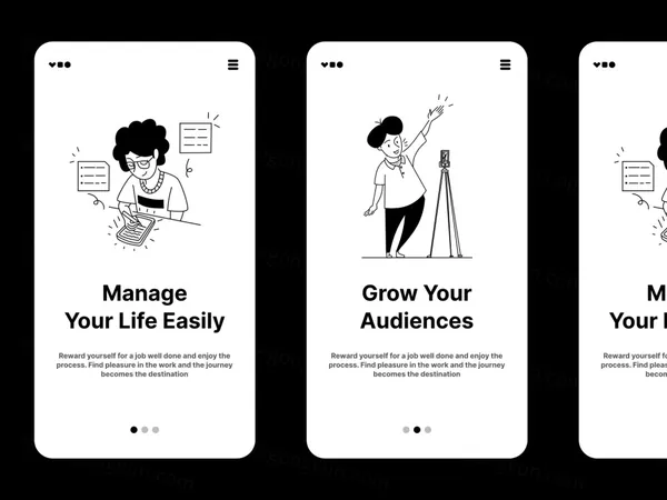 图穷联素材库 » 潮流黑白新媒体内容创作者人物场景主题插图插画素材合辑 Notion Content Creator Club