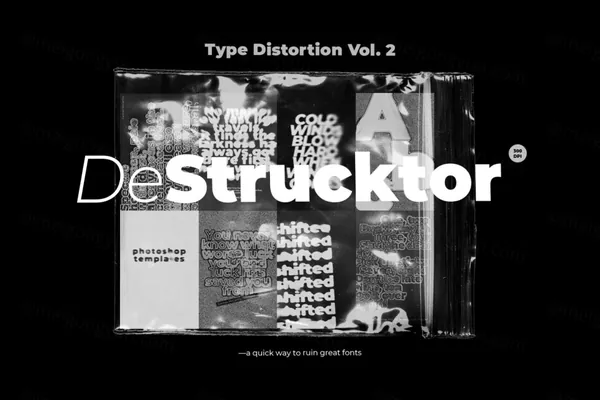 \\\\\\\' DeStructor \\\\\\\' 是一组各种艺术 Photoshop 文本效果。非常适合印刷海报设计,并且适用于屏幕和印刷。
