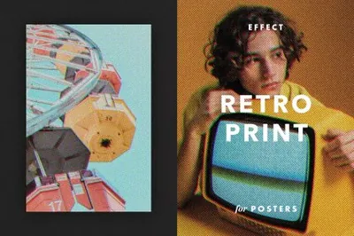 潮流复古做旧艺术老式半色调粗糙颗粒感图片创意海报特效模板素材 Retro Print Effect