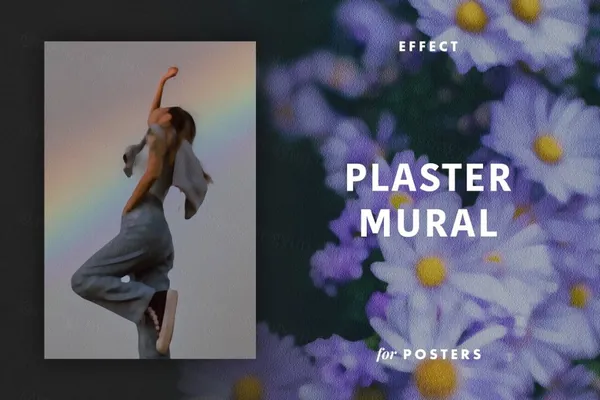 图穷联素材库 » 高质量石膏壁画照片特效处理PSD模板素材 Plaster Mural Effect for Posters