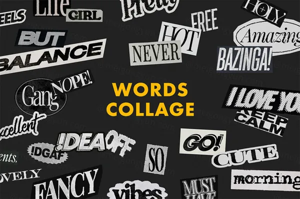 图穷联素材库 » 复古报纸海报趣味英文标题剪贴贴纸素材合辑 Quotes / Words Collage Cut-Outs