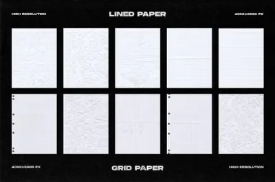 使用我们的粗糙纸张纹理捆绑包(包括各种高分辨率仿旧纸张背景)为您的设计添加一些垃圾和纹理。从30 种黑色、白色、线条和网格纹理中进行选择,全部以600dpi扫描,以保留高水平的细节。
