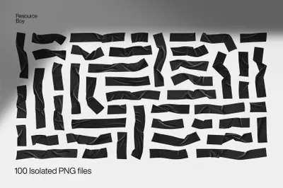 高质量黑色褶皱胶带不干胶透明免扣PNG素材 100 Electrical Duct Tape Textures