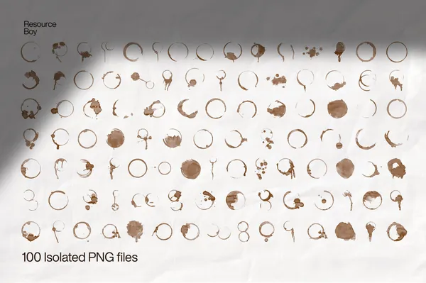 在喝了 100 杯咖啡,并将它们变成 100 块咖啡渍 PNG 后,我们的团队已经做好充分准备,用您一生中最真实的咖啡环纹理让您惊叹不已。如果找到最好的手工制作的优质咖啡渍纹理很有趣,那么在透明和独立的文件中免费获得所有这些纹理肯定会感觉双倍的回报。继续选择我们的任何 PNG 文件,在您的设计上创建最高分辨率的咖啡渍,任何数量的清洁剂都无法去除。然后多看看我们的独家纹理库,发现其他简单但有效的方法来使您的艺术独一无二。