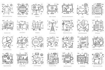 图穷联素材库 » 扁平化线型图标 615 Flat Line Icons