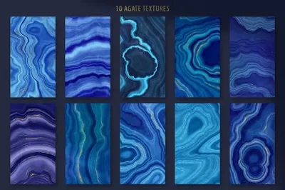 高端奢华蓝色玛瑙黄金大理石地板纹理素材合集 Blue / Gold Agate Geode Textures