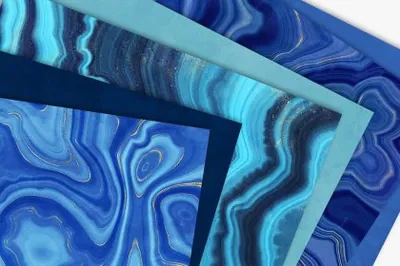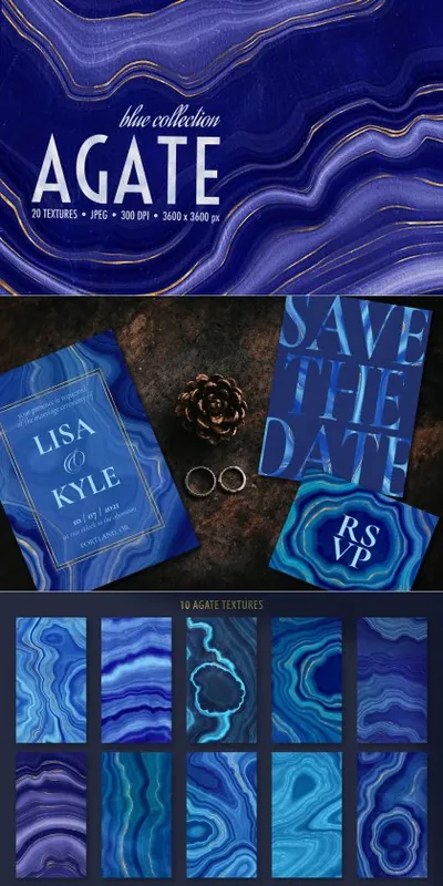 该系列具有 10 种华丽的鼠标制作纹理,灵感来自玛瑙和晶洞。丰富的喜怒无常的蓝色和充满活力的金色的经典调色板给这个系列带来了平静和舒适,但又现代和新鲜的感觉。