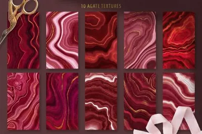 图穷联素材库 » 高端奢华红玛瑙黄金大理石纹理素材合集 Gold Veined Red Agate Textures