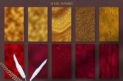 为了给您提供更多的设计选择,我提供了 10 种抽象的、略显仿旧的纸状纹理,其红色色调与金色相辅相成。