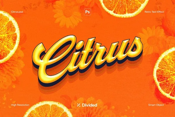 复古柑橘怀旧英文字体特效PSD模板 Citrus Retro Text Effect