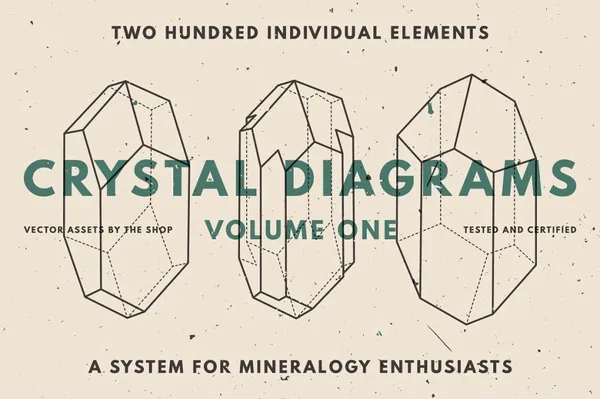 这 200 个资产 (200) 是使用 Illustrator 中的钢笔工具精心绘制的,来源自古老的矿物学/宝石学书籍。它们有三个版本: