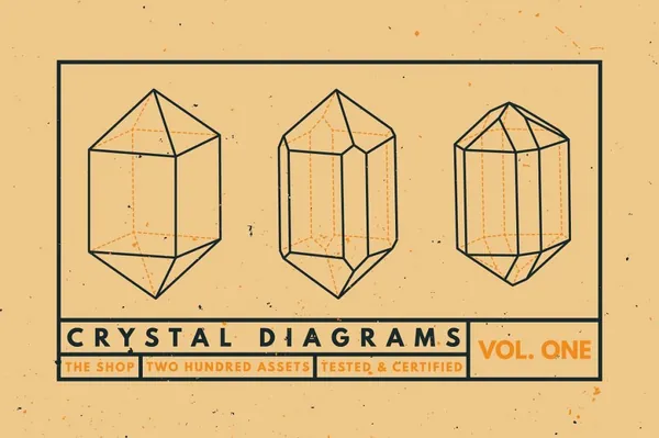 古老宝石矿物学水晶线稿矢量插图素材 Crystal diagrams vol. 01