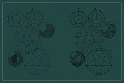 这些元素源自 1543 年一份名为Hirschvogel\\\'s Geometria的古老数学条约的三个不同版本。我对该卷的数字化页面进行了排序,并选择了最具视觉冲击力的元素。维基百科、大都会博物馆的数字收藏和公共领域评论托管了我使用的扫描。