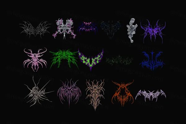 图穷联素材库 » 潮流酸性艺术嘻哈小众纹身Blender三维渲染抽象金属形状素材合集 16 Metallic Shapes