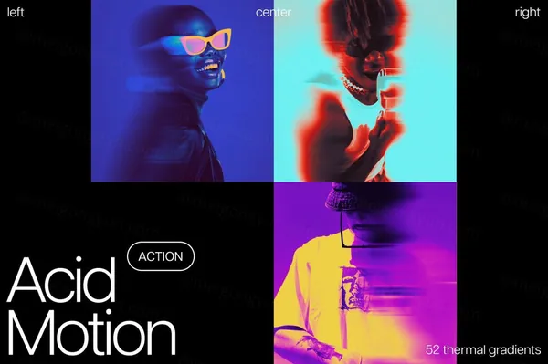 图穷联素材库 » 潮流酸性艺术神秘迷幻渐变模糊失真图片特效PS动作素材 Acid Motion Photoshop Action