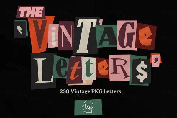 250 个高分辨率 PNG Vinatge 赎金字母、数字和额外单词!