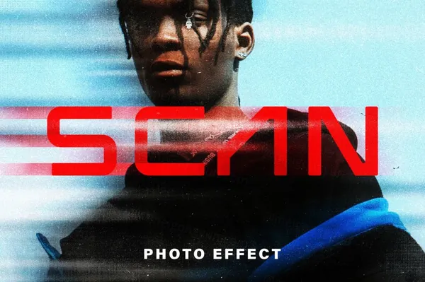 未来派科幻风化失真老式打印错误噪点纹理图片效果PSD模板 Retro Scan Photo Effect