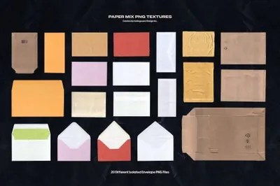 图穷联素材库 » 复古做旧艺术纸板信封纸牛皮纸便签纸便利贴记事本纸张纹理背景素材大合集 Paper Mix
