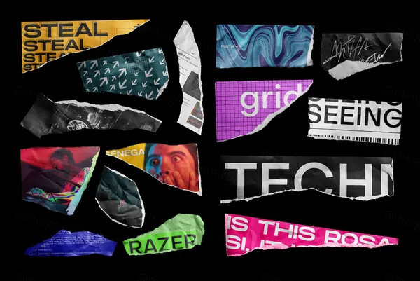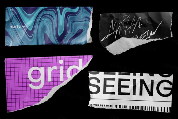 图穷联素材库 » 高质量做旧艺术撕裂纸张碎片褶皱纹理手稿设计提案样机PSD模板 Martyr - Torn Paper 1
