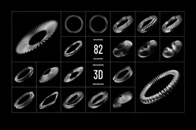 该套装包含 82 个高品质独特的镀铬 3D 形状。非常适合海报、封面、网页设计、社交媒体、包装或任何其他需要大胆和时尚设计的创意项目。