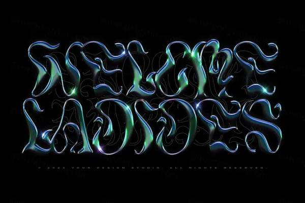 潮流酸性艺术精致镀铬金属字体特效PSD模板素材 Chrome Text Effect