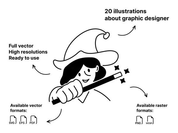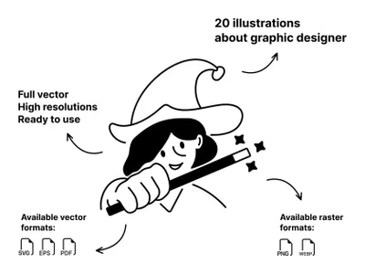 一组 20 张关于平面设计师的简约 Notion 插图