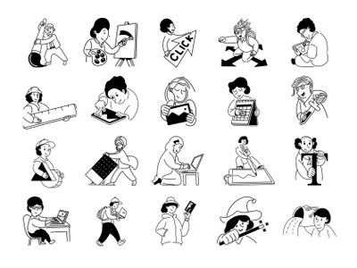 图穷联素材库 » 潮流Notion风黑白极简主义设计师创意工作者人物插画素材合辑 Notion Graphic Designer
