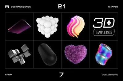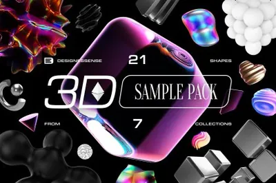 高质量酸性艺术抽象3D形状元素样品预览包免费下载 3D SAMPLE PACK