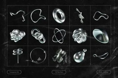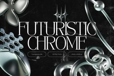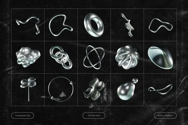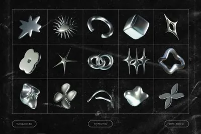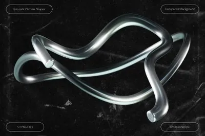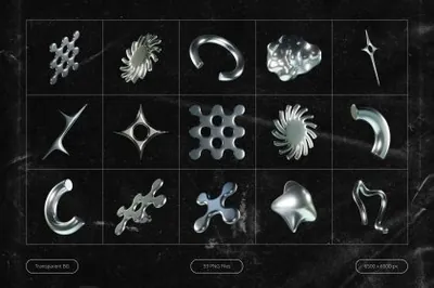 高品质的未来镀铬形状,非常适合海报、封面、网页设计、社交媒体、包装或任何其他需要复古和时尚设计的创意项目。