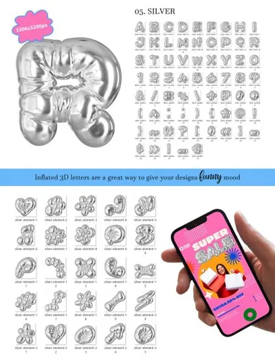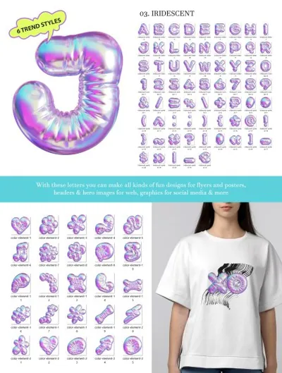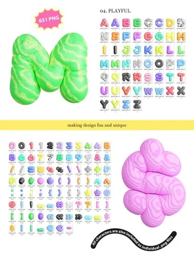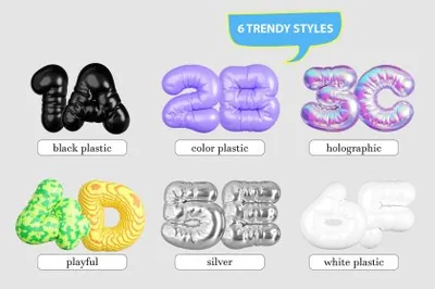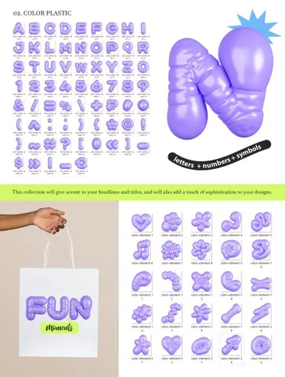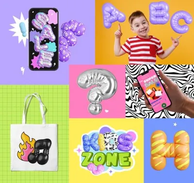 潮流酸性艺术卡通彩色糖果色炫彩气球质感泡泡胖胖字母字体PS素材 3D Inflated Type
