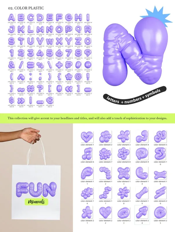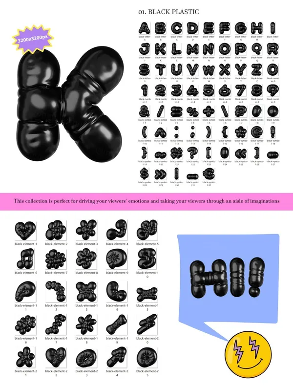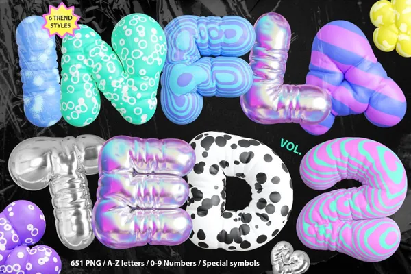 图穷联素材库 » 潮流酸性艺术卡通彩色糖果色炫彩气球质感泡泡胖胖字母字体PS素材 3D Inflated Type