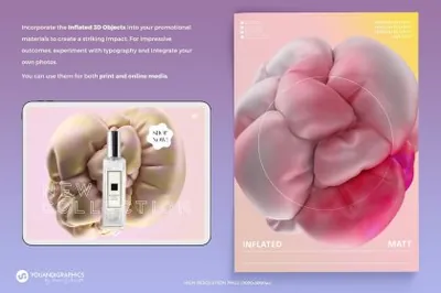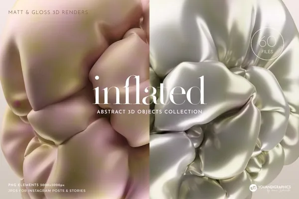 潮流未来派圆抽象几何球体3D形状PNG设计素材合集 Abstract Inflated 3D Objects