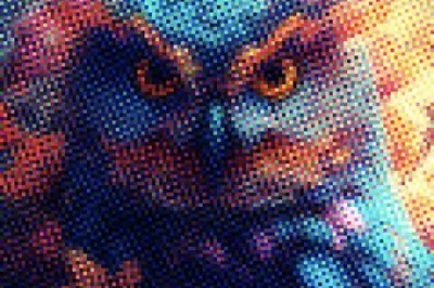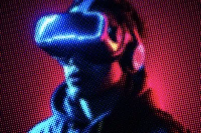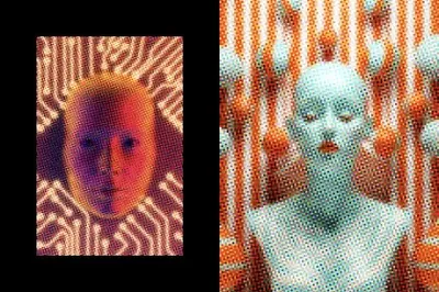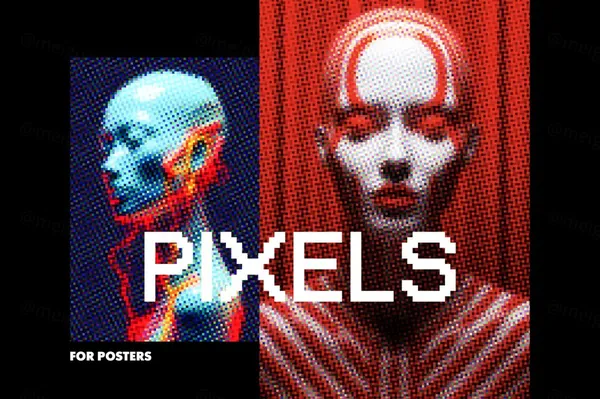 图穷联素材库 » 潮流未来派科幻像素风街机游戏半色调海报PSD模板素材 Colorful Pixels Photo Effect