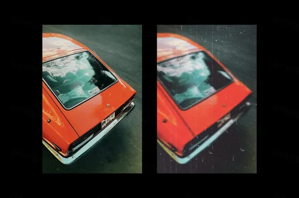 复古显像管老电视效果划痕灰尘做旧老照片特效PSD模板素材 Old Tube TV Photo Effect