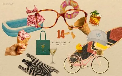 图穷联素材库 » 复古夏季假日美学元素剪贴画剪贴画素材合集 Vintage Vacay Collage: 90+ Elements
