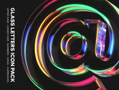 图穷联素材库 » 透明玻璃质感3D立体字母数字图标插图素材合集 Glass Letters 3D Icon Pack