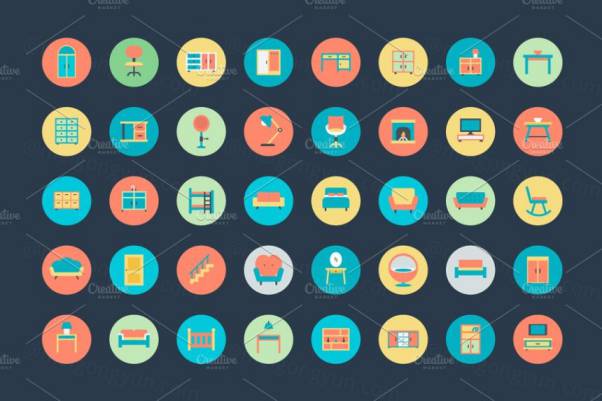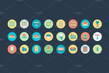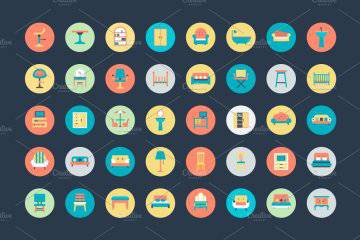 100 平面家具图标 100 Flat Furniture Icons