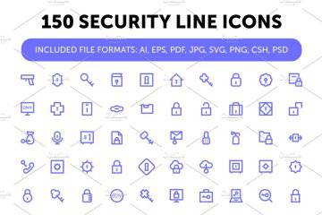 图穷联素材库 » 150个安全图标 150 Security Line Icons