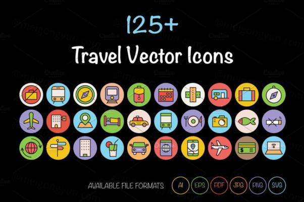 图穷联素材库 » 125 旅行矢量图标 125 Travel Vector Icons