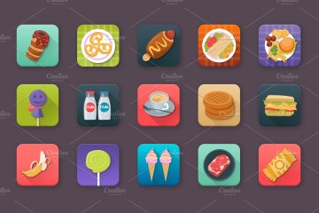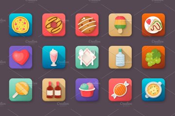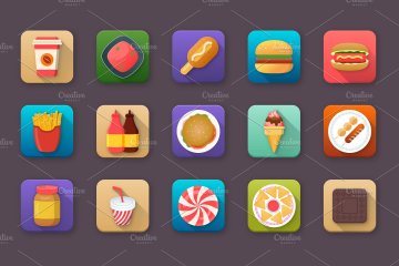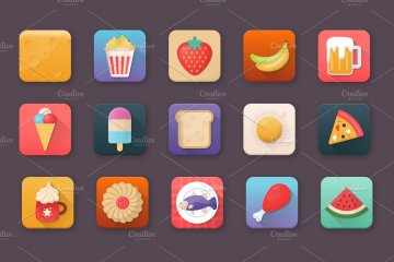 图穷联素材库 » 60个食物和饮料应用图标 60 Food and Drinks App Icon