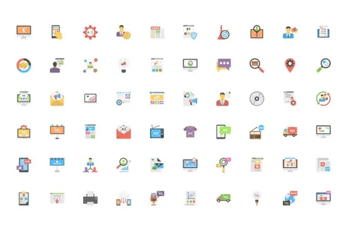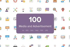 100个平面媒体和广告图标 100 Flat Media and Adverti