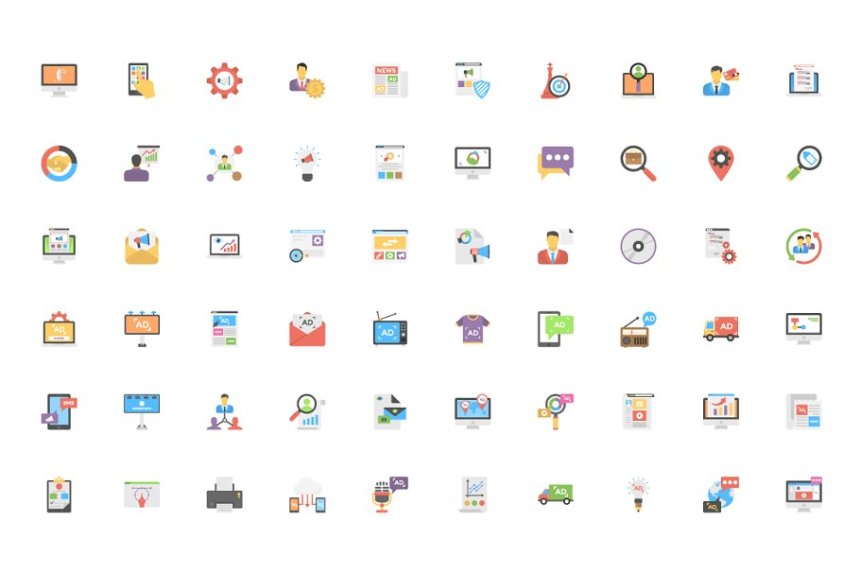 图穷联素材库 » 100个平面媒体和广告图标 100 Flat Media and Adverti