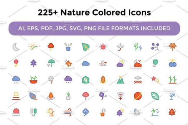 图穷联素材库 » 225 自然彩色图标 225 Nature Colored Icons